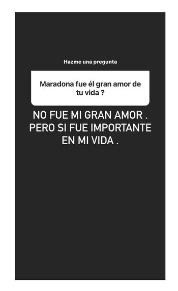 “¿Dieguito tiene relación con sus hermanos?”, fue una de las consultas que le hicieron, a lo que ella contestó: “No tiene relación. Sólo a veces habla con Jana”, fue su escueta pero punzante respuesta. Otra de las inquietudes que recibió fue: “¿Maradona fue el gran amor de tu vida?”. Sincera, la profesora de gimnasia admitió: “No fue mi gran amor, pero sí fue importante en mi vida”. Y, en ese contexto, confesó extrañarlo. Además, los internautas también quisieron saber si era cierto que le había pegado a Rocío Oliva. “Dios se encargará de todo el mal que hicieron”, se limitó a expresar. Por otra parte, le consultaron si siente que se hará justicia por la muerte del astro del fútbol. “Creo en la Justicia”, señaló.