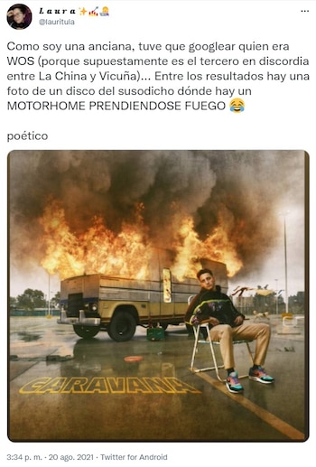 18 de diciembre de 2019, Instagram Stories de La China. “Si aun no escuchaste a Wos, no sé que estás esperando. Posta”, escribió la actriz sobre una foto que tomó desde la platea frontal del Luna Park: desde allí tenía una vista privilegiada al escenario en el que el rapero y su banda lucían iluminados y hacían sonar las canciones del disco Caravana. Sí, ese que tiene un motorhome en llamas en su portada y que muchos lo compararon con el que contuvo la pasión, el fuego y la bronca del célebre triángulo China-Vicuña-Pampita.