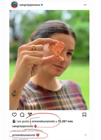 Además, la ex protagonista de ATAV subió una foto sosteniendo una figura de un corazón en su mano, con la que se tapa uno de sus ojos. ¿Quién le dio like, entre los miles de usuarios? @armandounamoto, y también le comentó con el mismo emoji. Todo sucedió el mismo día en que ella había dejado de seguir en Instagram a Benjamín Vicuña, el padre de sus hijos menores, de quien se había separado a fines de agosto del año pasado. El actor chileno, en tanto, ya había hecho lo propio antes, cuando explotó el escándalo con Icardi.
