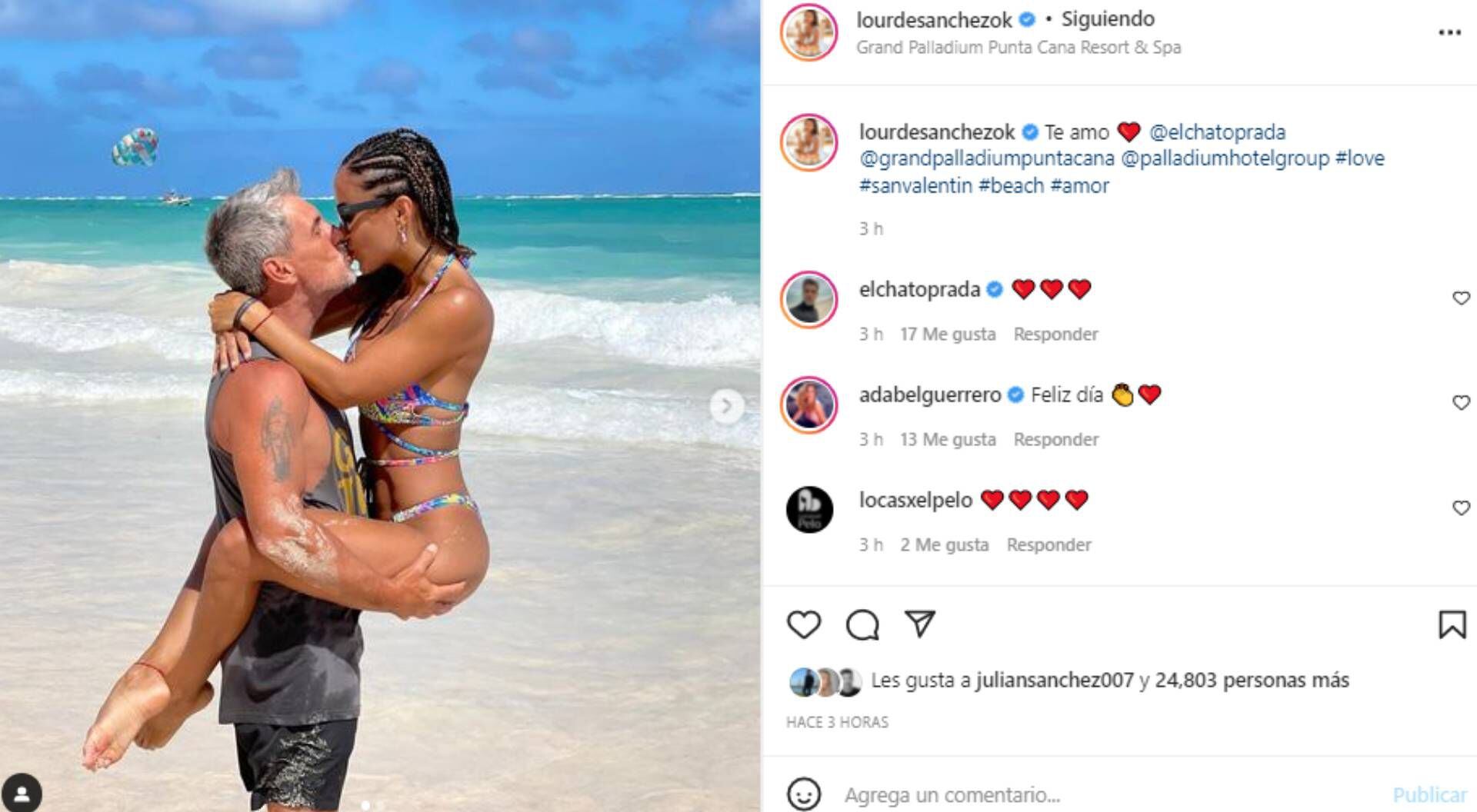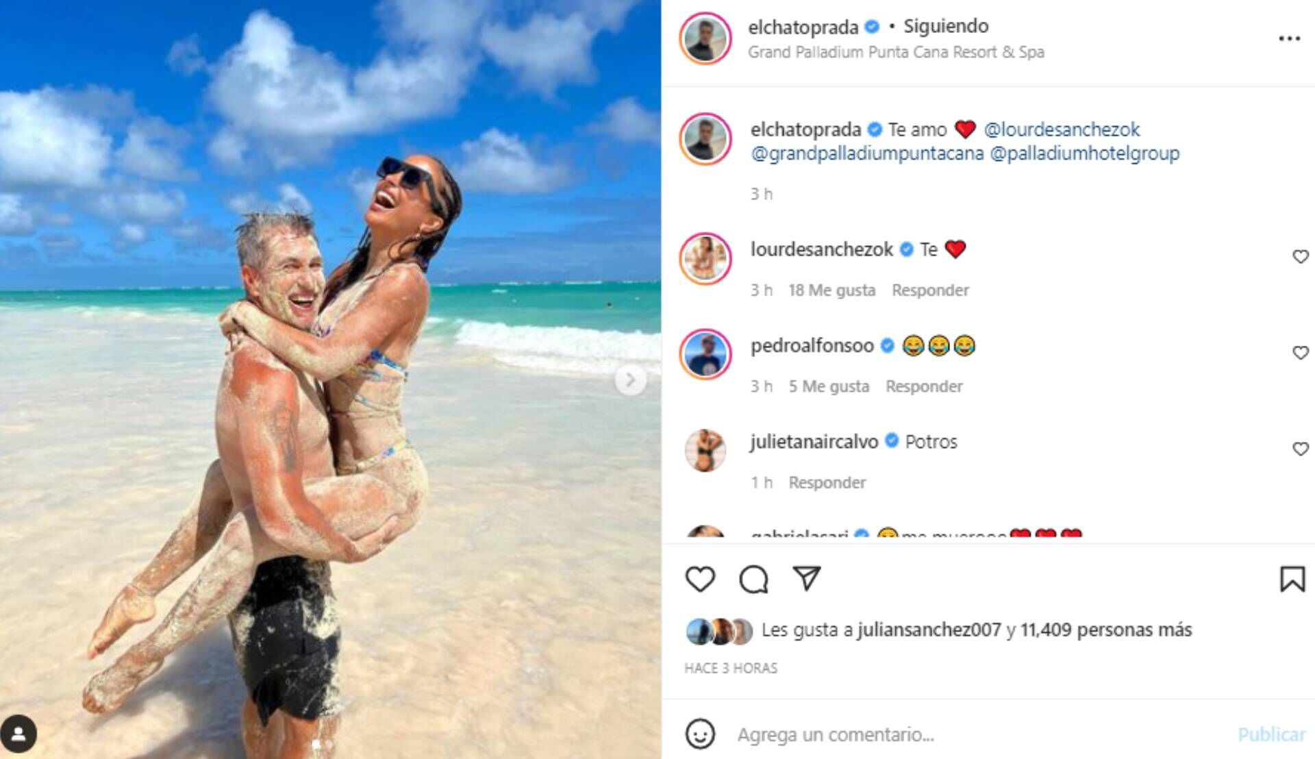 El Chato Prada y Lourdes Sánchez también se expresaron su amor en las redes. Ambos compartieron fotos en las playas de Punta Cana, donde están disfrutando de unas vacaciones de verano con su pequeño hijo, Valentín. La familia también realizó una divertida escapada a los parques temáticos de Disney en Florida, Estados Unidos.