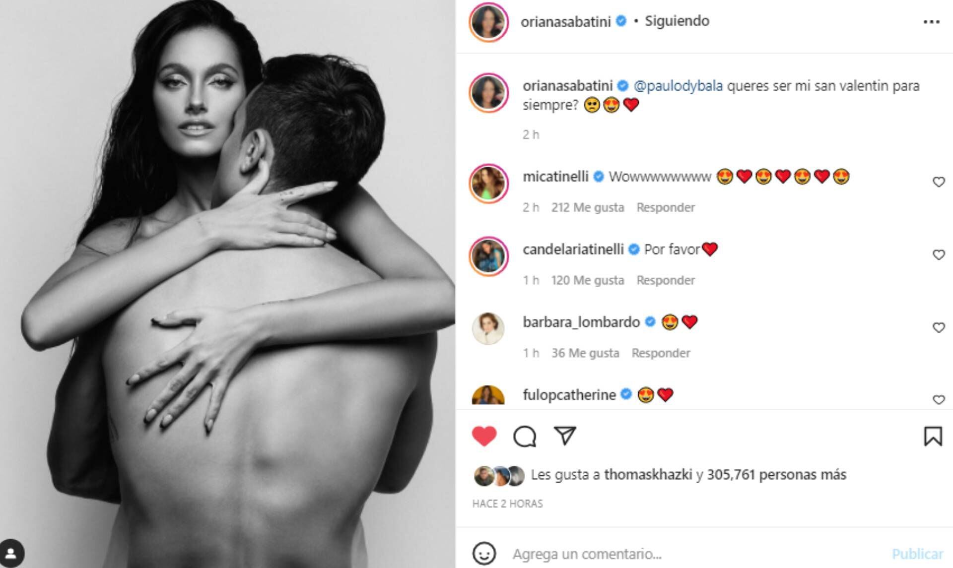 Oriana Sabatini compartió con sus miles de seguidores una fotografía en blanco y negro en la que aparece abrazada a su pareja, Paulo Dybala. “¿Querés ser mi san Valentín para siempre?”, le preguntó la hija de Cathy Fulop y Ova Sabatini. Desde su cuenta oficial, el deportista también le dedicó un hermoso mensaje: “Feliz San Valentín, mi amor”.