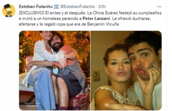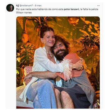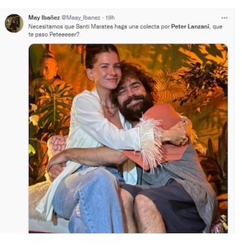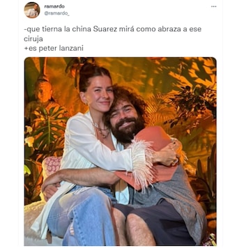 “Qué tierna la China Suarez, mirá como abraza a ese ciruja...Es Peter Lanzani”, “¿Por qué nadie está hablando de cómo está Peter Lanzani? Le falta la pelota Wilson nomás”, “Necesitamos que Santi Maratea haga una colecta por Peter Lanzani, ¿qué te pasó Peter?”, fueron algunos de los mensajes que se viralizaron.