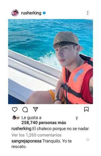 Al parecer, la pareja se consolidó en el viaje que realizaron a las paradisíacas playas de Cancún. En sus redes sociales, La China había compartido un video en el que se la veía feliz de la vida mientras navegaba en un catamarán. El muchacho, en cambio, subió a su Instagram una foto de ese mismo momento con cara seria y un salvavidas en su torso. “El chaleco porque no sé nadar”, escribió el joven. Pero la China lo calmó con un comentario: “Tranquilo. Yo te rescato”.