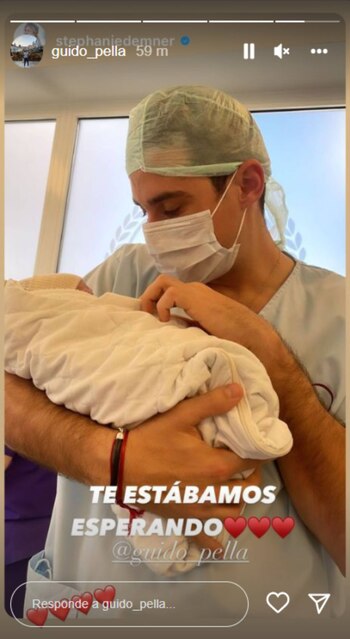 En la primera fotografía de la pequeña aparece su manito y parte de su cuerpo recostado sobre uno de sus padres. Varios amigos y familiares de la pareja los felicitaron y le dejaron mensajes cariñosos, como Paula Chaves, Floppy Tesouro, Mery del Cerro, el Pollo Álvarez y Teresa Calandra, entre otros. También Guido compartió en sus historias una imagen de él sosteniendo a la beba. “Te estábamos esperando”, señaló.