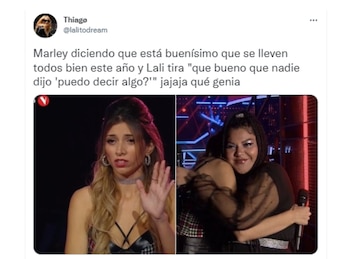 Luego de los aplausos, la ganadora se deshizo en elogios para con su compañera, y Marley acotó: “Qué bueno que este año todos se llevaron perfecto”. Entonces, la ex Casi Ángeles no pudo evitar comparar esa situación con una totalmente opuesta que ocurrió en 2021, cuando las concursantes Jéssica Amicucci y Esperanza Careri confesaron haber tenido una muy mala relación durante los ensayos. “Ay, sí, qué bueno que este año no fue ´¿puedo decir algo?´”, expresó Lali imitando el tono de Amicucci cuando al año pasado se enfrentó con su compañera y se transformó en un meme que se viralizó en las redes sociales.