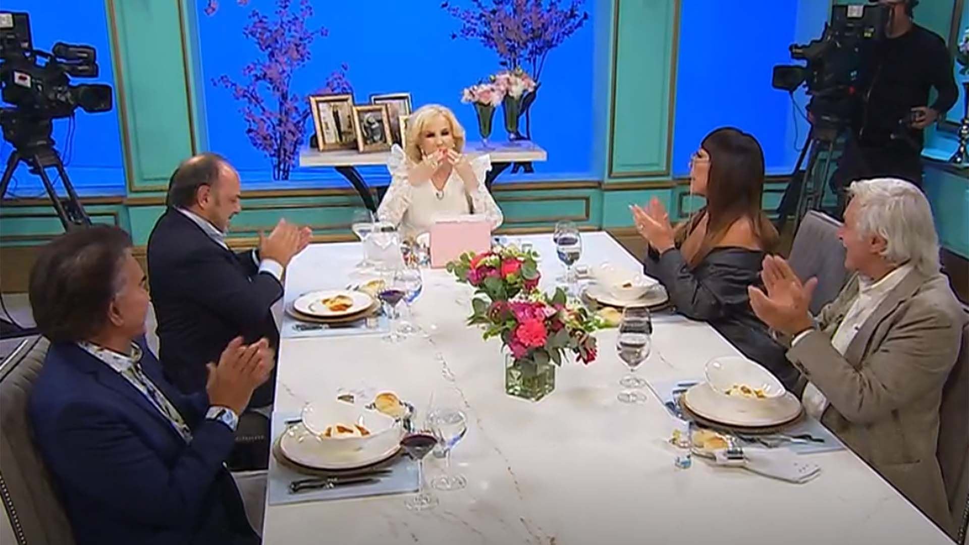 Ya en la mesa, y como buena anfitriona, Mirtha saludó uno a uno a sus comensales y pasó lista por las veces que habían visitado el programa. Empezó con Moria, con unos llamativos lentes oscuros que se quitó al poco tiempo. Siguió con el Puma Rodríguez, quién le confesó que estaba enamorado de ella desde los años que vivía en Venezuela. “¿Y no te desilusioné cuando me conociste?”, le preguntó irónica, dando la primera muestra de su estilo único. Naturalmente, el artista contestó con cortesía y todo terminó entre risas.