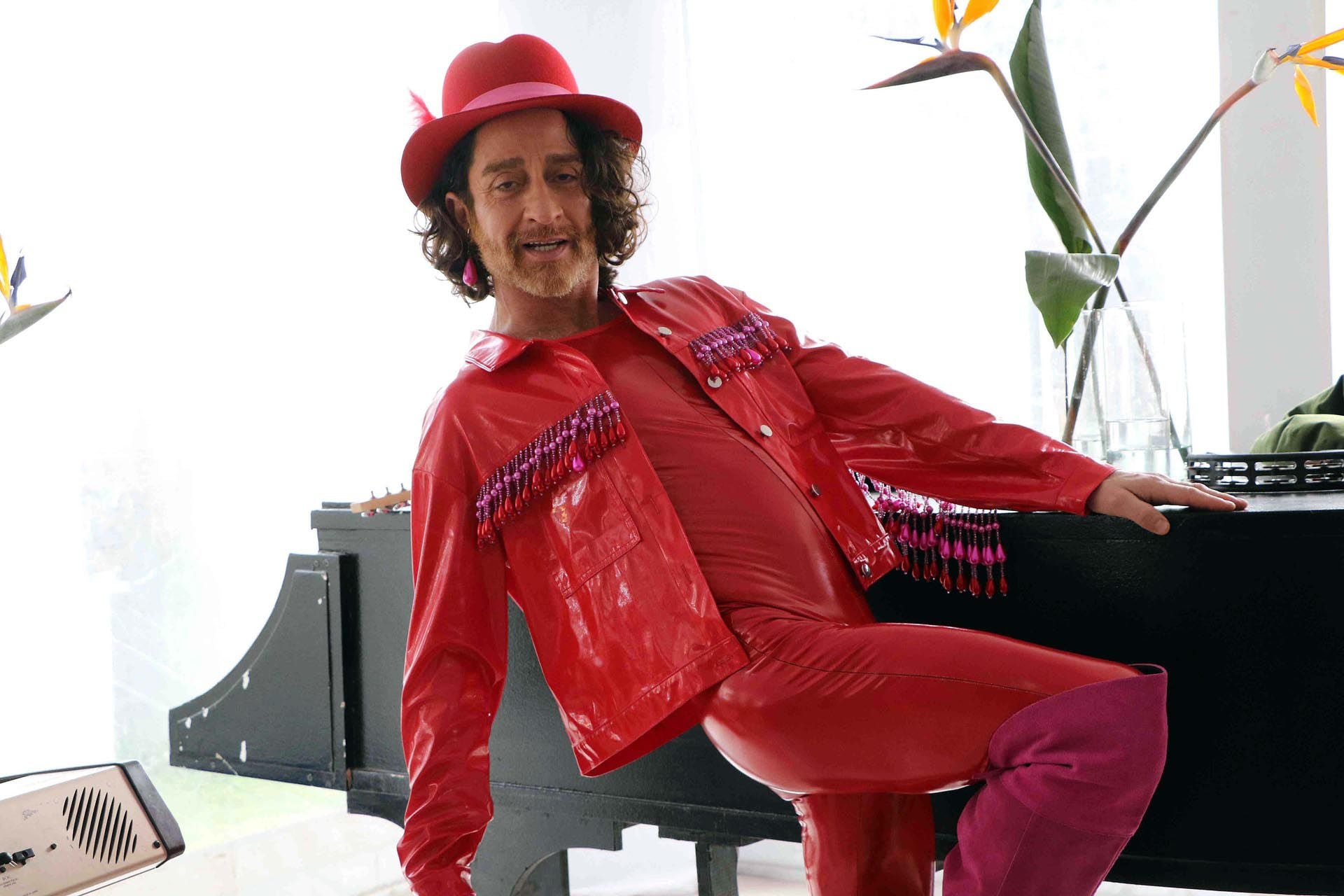 Confiesa que, fuera de cámara, vive de jogging, buzos y zapatillas. “En la calle me reconocen solo por los rulos, porque mi pelo es muy característico”, sostiene. Pero cuando se enciende la luz roja, su look se transforma. “Los trajes fueron idea mía, yo se lo propuse al equipo de producción y empecé a mostrarles los primeros, les encantó. Me los hace el diseñador de alta costura Jorge Sandoval, que es muy teatral. No tiene que ver con destacarme, sino con el universo en el que yo me siento seguro, porque esto es lo que yo me pondría en el escenario. Me gusta ese universo musical, grandilocuente y teatral”, explica.