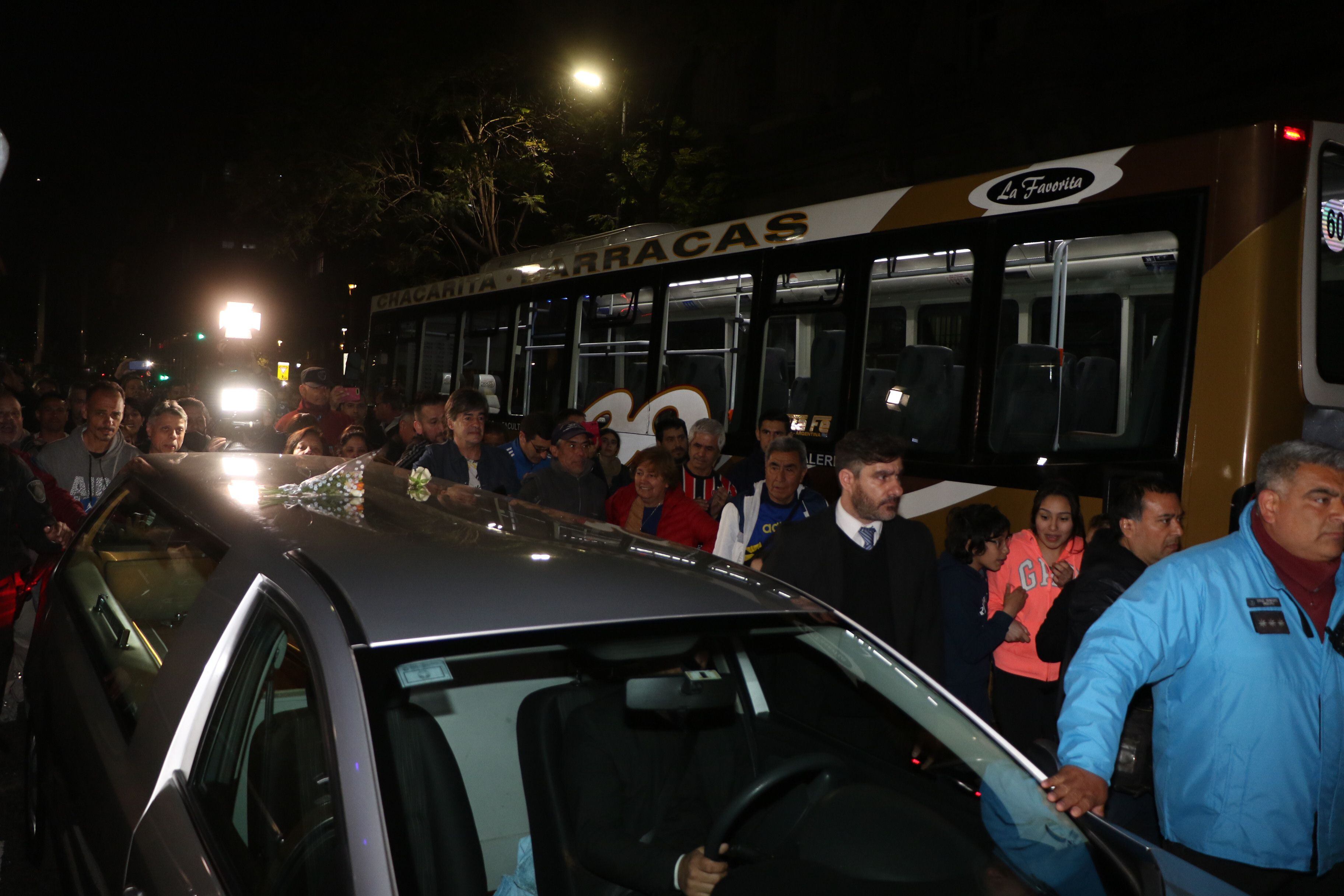 Al caer la noche, la periodista Fanny Mandelbaum y el humorista Jorge Carna Crivelli se sumaron a la lista de famosos que despidieron a Carlitos. A las 21, según lo planeado, el cajón fue retirado de la Legislatura en medio de cerrados y respetuosos aplausos de quiénes todavía se agolpaban sobre la calle Perú. La imagen no podía ser más icónica. Las banderas de Chacarita Juniors. Los colectivos de la Línea 39. Hombres y mujeres de todas las edades, con los rostros confundidos por la alegría y la tristeza.