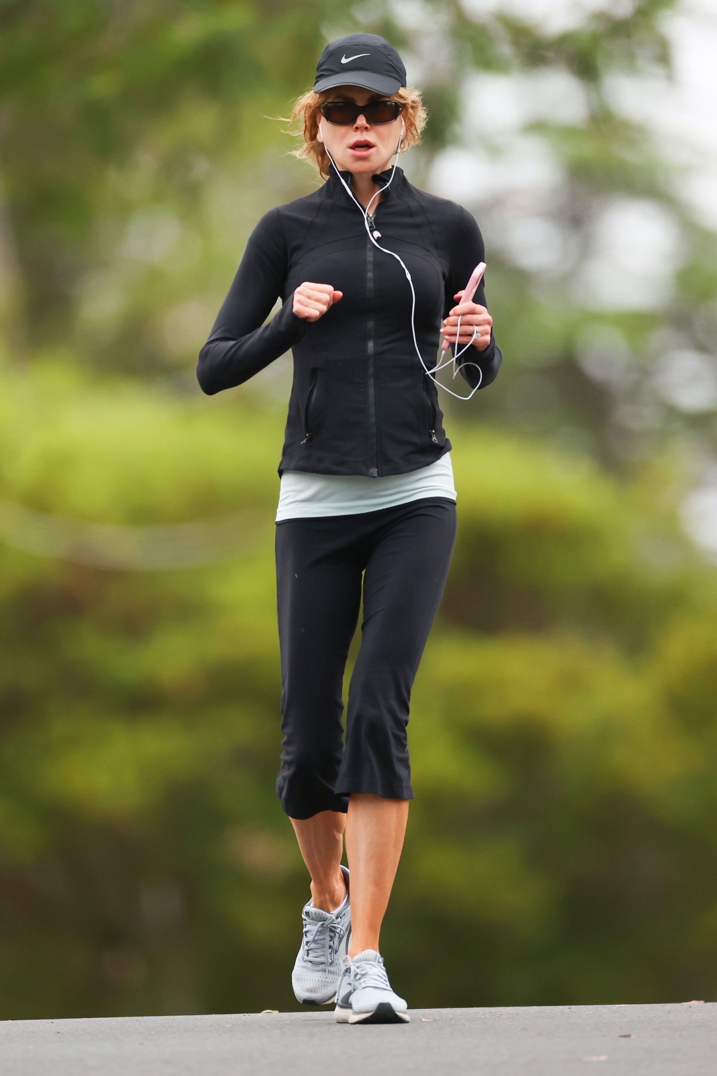 Nicole Kidman salió a correr durante sus vacaciones en Sydney con su esposo Keith Urban. La actriz, de 55 años, lució ropa deportiva ajustada mientras salía a correr por la ciudad. La estrella de Nine Perfect Strangers vistió calzas negras, una camiseta blanca y una chaqueta negra
