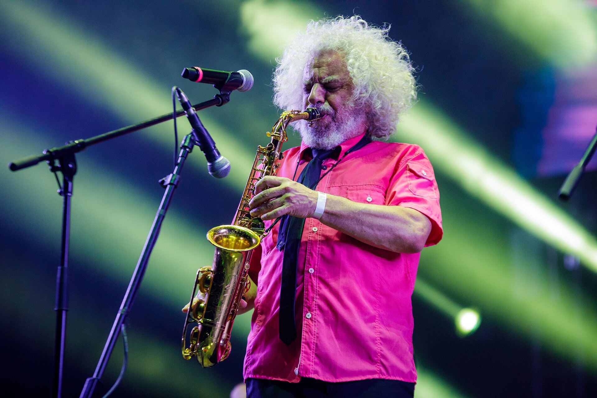 “Carnaval toda la vida” -himno nacional de la saudade-, “Mal bicho” y “Matador” marcaron el cierre de la primera parte y, tras un breve descanso, se dio otra postal familiera. En un solo de bajo, Flavio hiló “Post crucifixión” (Pescado Rabioso), “Mañana en el Abasto” (Sumo), “La pomeña” (Cuchi Leguizamón) y el himno argentino para derivar en “Vos sabés”, que en 1999 escribió inspirado por la llegada de Astor, su primer hijo. Ese que ahora mismo asumió el protagonismo, de nuevo desde los parches, y lo transformó en el tumbao “Hoy lloré canción”. Todo desde donde anidó “el león del ritmo”, entre su set y la batería de Fernando Ricciardi, justo ahí donde se imprimió el rostro del percusionista Toto Rotblat, fallecido en 2008.