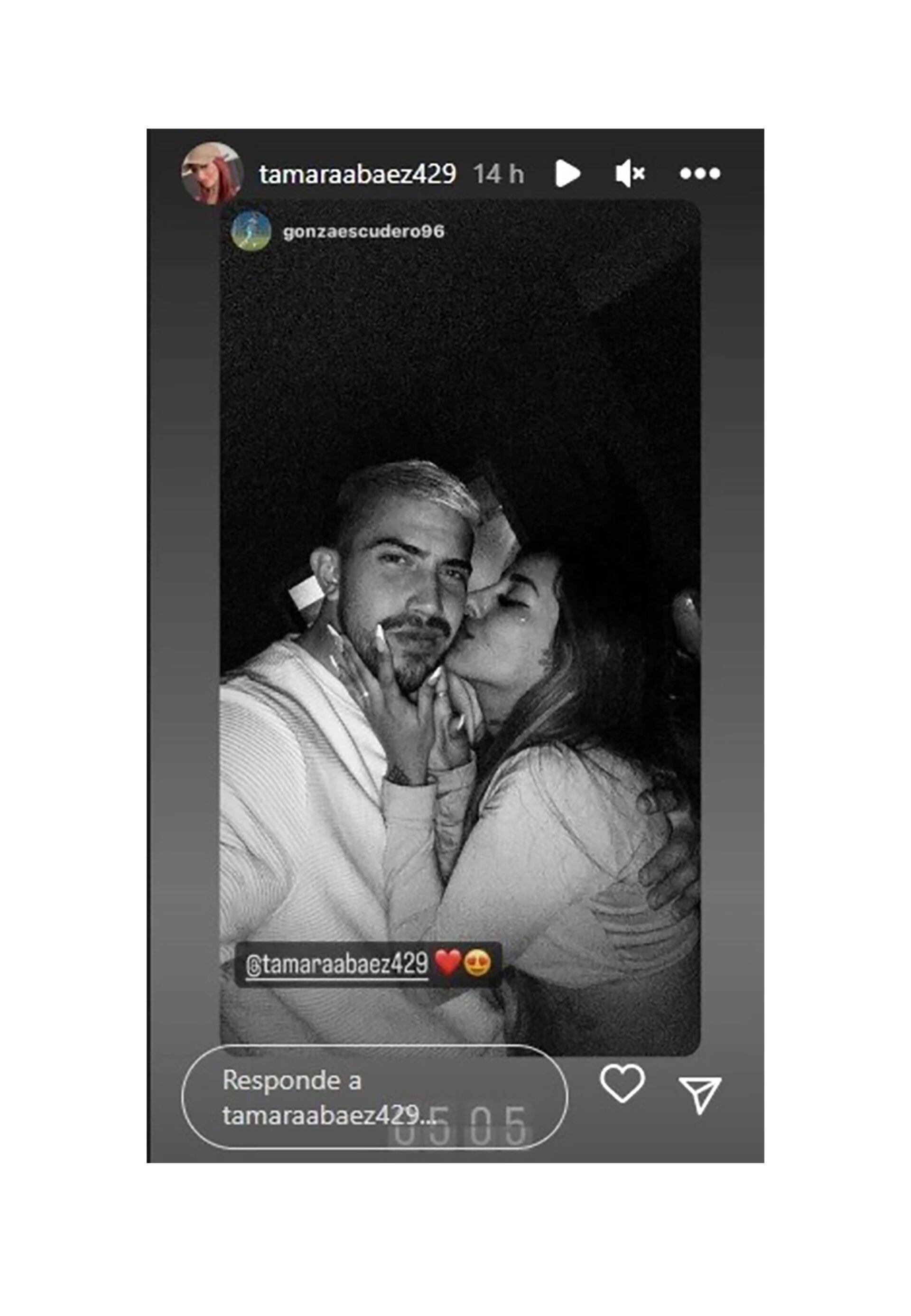 Además del video en cuestión, Báez reposteó una selfie que se tomaron con Gonzalo a su cuenta. Esta foto la subió él y se la puede ver a ella dándole un beso. Otro dato importante es que dejaron ver la hora, y esto no es algo casual. Eran las 5.05 de la mañana. A continuación, en otra historia, Tamara subió una captura de Internet donde se explica el significado de ese número espejo: “La hora del amor”.