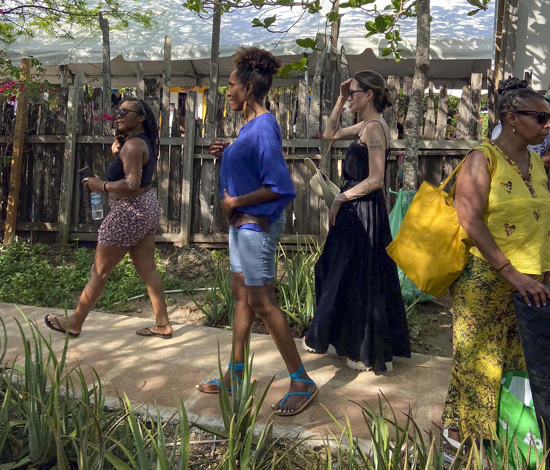 Angelina Jolie fue fotografiada mientras caminaba por una feria en Jamaica, en donde se encuentra de vacaciones. La reconocida actriz se detuvo en un puesto a comprar compró productos de salud y belleza