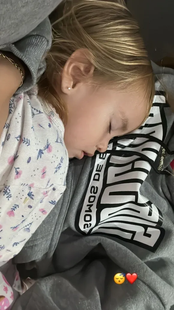 Después, Tamy volvió a realizar dos publicaciones pero esta vez de su hija. Preocupada por la salud de Jamaica, compartió dos fotos en las que se la pudo ver durmiendo al lado de la nena. “Mi bebé se siente mal”, escribió la mediática junto a un emoji de una carita de preocupación.