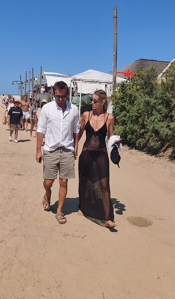 El actor chileno estaba vestido con una camisa blanca al cuerpo, una bermuda color caqui y unas sandalias al tono. Ella, por su parte, lució una bikini negra y un vestido transparente, bien playero. Los dos, además, calzaron sendas gafas oscuras para proteger la vista del sol. El cielo esteño se mostraba despejado y la temperatura fue la ideal para disfrutar de la playa: unos 32 grados.