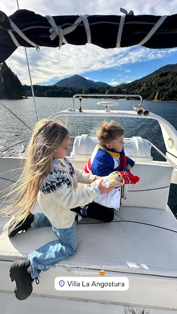 La presencia de sus hijos fue una constante durante la filmación. Suárez publicó imágenes abrazando a su hija Rufina frente al lago Lácar, a quien definió como “mi compañera incondicional”. También mostró una noche lluviosa en la que ambas adquirieron “amigurumis” en una feria artesanal de San Martín de los Andes. Otras fotografías la muestran llevando en brazos a Magnolia hacia una cabaña de montaña y compartiendo momentos junto al fuego con Amancio y Magnolia dentro de una cabaña. Además, la familia aprovechó los días libres para navegar por el lago Lácar en Villa La Angostura.