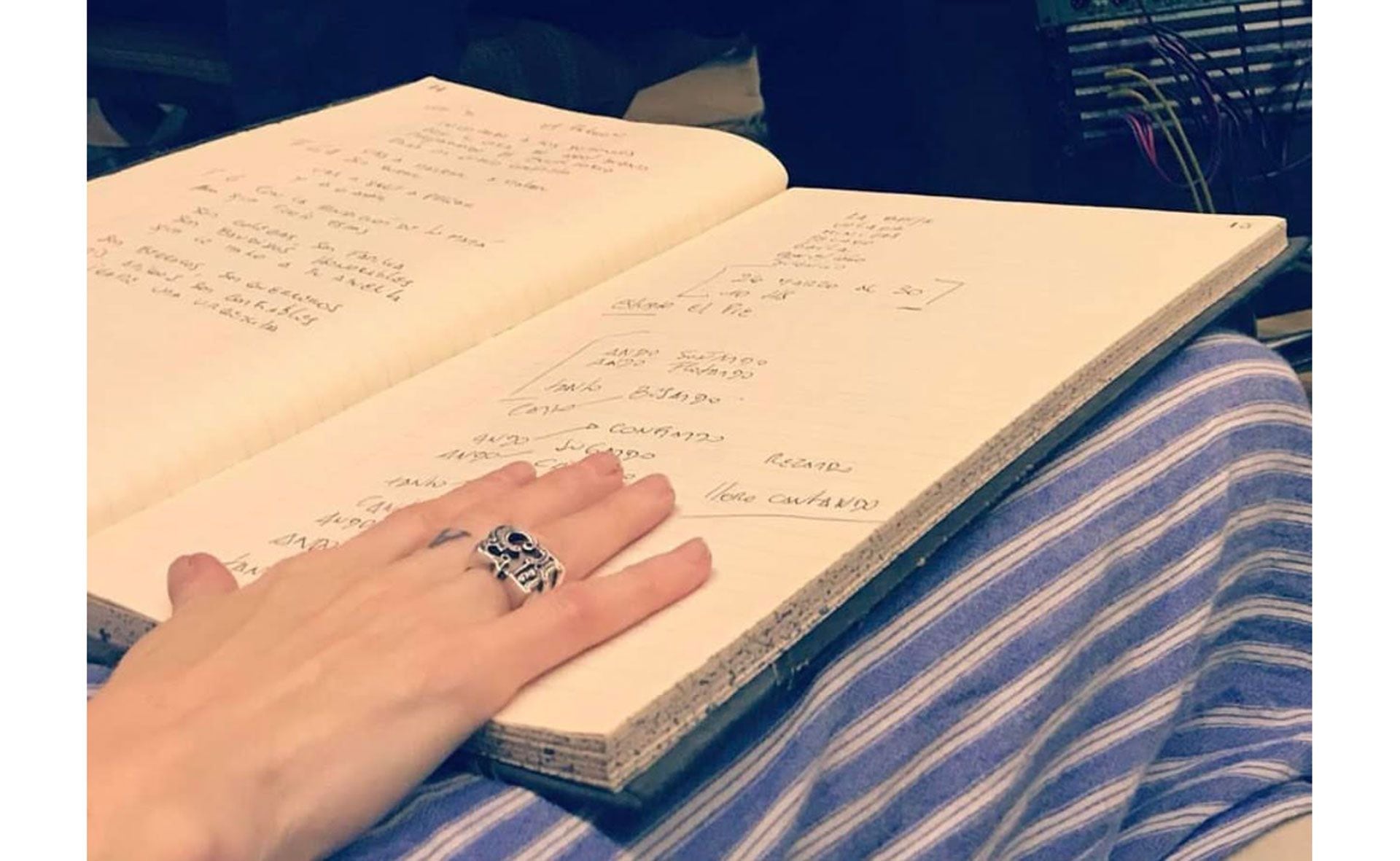 Pero esa vez, “ganó el deseo”. A la sazón, Jano Seitún, su guía en un “taller de canciones”, entró a cuadro con la misión del incentivo. De cita en casa –su “sitio más sagrado”–, el músico revisó esos “fragmentos, pedacitos y esbozos de temas” que ella apilaba en sus cuadernos desde el primero, en 1998. “Todos, y cada uno, escritos a mano: la mejor forma de volcar los sentimientos”, subraya. Algo parecido ya había hecho el Colo Belmonte, baterista de aquel show al subirla en su escenario rosarino. Así nació Coronados de Gloria, con una lección para siempre: “Hay que estar atentos, porque detrás de un gran miedo siempre hay felicidad”, sugiere.