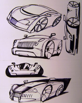 Admirador de la marca italiana Alfa Romeo, poseedor de un emblemático Mercedez Benz 280 SE Coupé de 1971, Spinetta no dibujaba coches sólo por hobby: pensaba que podrían llegar a ser fabricados. Incluso, envió a distintas automotrices algunos de esos bocetos, todos realizados a mano alzada, claro, y a menudo secundados por poemas.
