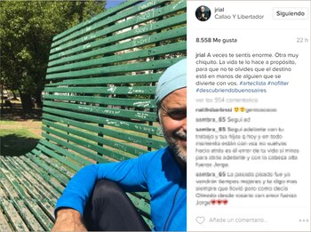 Sucedió un par de meses atrás, en una mañana cualquiera. Pero no fue un primer paso sino una vuelta completa al pedal. Y después otra, y otra, y otra más. Y en eso levantó la vista hasta toparse -allí, en pleno paseo por Buenos Aires- con una obra de arte que lo inspiró. Le sacó entonces una foto, y acompañó con unas líneas su posteo en Instagram.