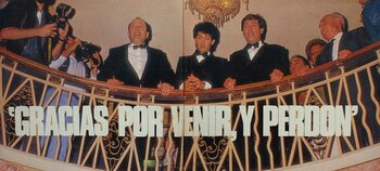 Aquella noche, pasadas las 21, Silvio Soldán había empezado con las notas televisivas a los famosos que arribaban al lugar: Niní Marshall, Teté Coustarot, Violeta Rivas, Néstor Fabián, Graciela Borges, Pinky, Ante Garmaz, Alberto de Mendoza, la gimnasta María Amuchástegui, el tenista Martín Jaite y muchos más. Una veinteañera Mercedes Mecha Sarrabayrouse deambulaba por los pasillos del teatro, cerquita de su joven novio: Eduardo Celasco.