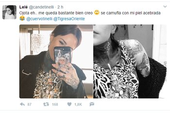 Un rato más tarde, la flamante novia de Franco Masini lució el regalo en las redes sociales: "Ojota eh…me queda bastante bien creo. Se camufla con mi piel acebrada", escribió, en alusión a sus tatuajes.