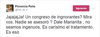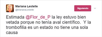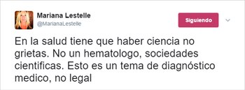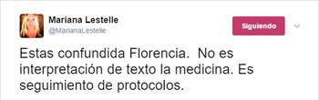 Sin embargo, con un tuit en el que Florencia le respondió a Mariana -"Hay muchos hematólogos que no están de acuerdo (con la falta de aval científico)"-, nombró a la tan mentada grieta. "En la salud tiene que haber ciencia, no grietas", retrucó la doctora.