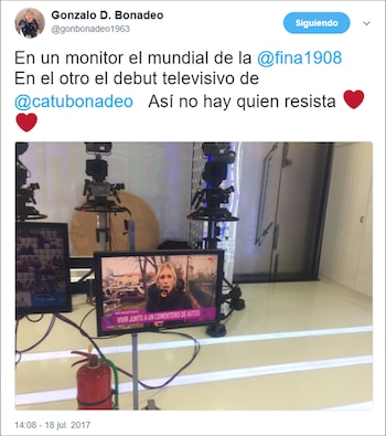 Y para orgullo de Gonzalo, quien escribió un emotivo tuit al verla por primera vez en la televisión abierta, mientras él hacía una transmisión en vivo para la señal TyC Sports: