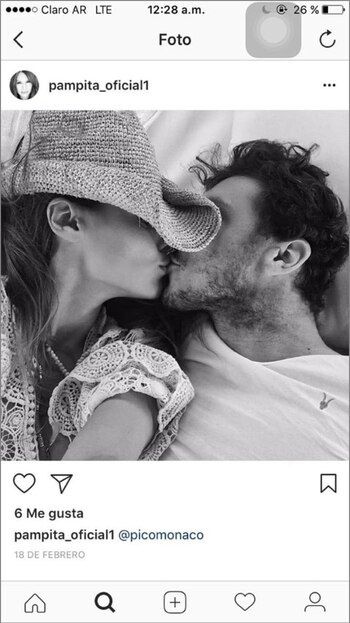Lo que llama la atención es que esta fotografía es muy parecida a una que publicó Carolina Pampita Ardohain, a los besos con Juan Pico Mónaco, en la red social el pasado 18 de febrero. ¿Será una obsesión de Suárez con su "archienemiga" o simplemente una casualidad?