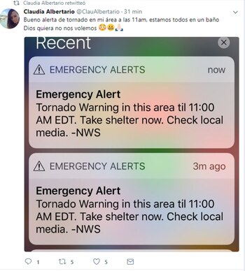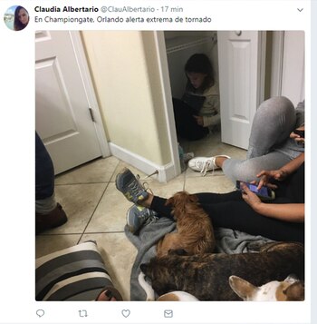Minutos después volvió a escribir "En Championgate, Orlando alerta extrema de tornado".