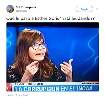 La reconocida actriz Esther Goris (54) fue invitada al programa Pamela a la tarde, donde brindó su opinión sobre la actual gestión de gobierno y habló sobre el manejo del INCAA, además de su nueva película sobre la vida de Tita Merello.