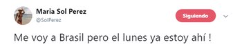 "Me voy a Brasil, pero el lunes ya estoy ahí", respondió Sol ante la inquietud de un usuario.