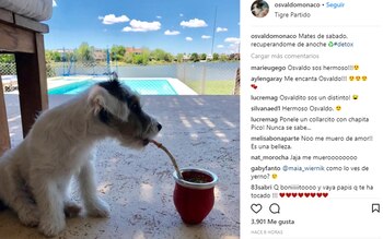 "Mates de sábado, recuperándome de anoche", fue el texto que acompañó una foto que Pico subió a la cuenta del perrito, en la que se lo ve al pequeño can con la bombilla del mate en su boca como si realmente estuviera disfrutando de la tradicional infusión.