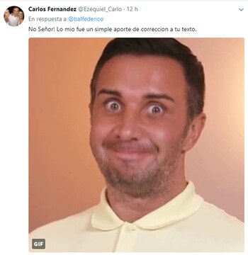 Claramente molesto con la situación, pero muy político en su respuesta, el participante del Bailando, le reclamó a su suegro: "¡Oiga señor! Si tenemos una buena relación, ni su hija me descanso, ¿lo está haciendo por ella?" y Carlos agregó: "Lo mío fue un simple aporte de corrección a su texto".