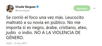 "Los judíos gobiernan, hace mucho, el mundo de las comunicaciones. No entiendo por qué nombrarlos los lastima. Yo soy una atea de mierda para muchos y no por eso ando agrediendo a mi pareja. La religión ya no es excusa para victimizarse. 'Me dijo judío… ¡Qué horror!' jajaja. Estoy leyendo a muchos justificar el zamarreo de Leucocito a su novia porque insultaron a su papá. La violencia de género no tiene justificación alguna, nunca. La grieta es para imbéciles. Si insultaran a mi viejo yo no me la agarraría con mi pareja", dijo la panelista en las redes sociales.