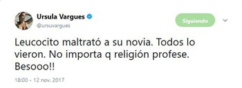 "No tengo problema con ninguna religión, malinterpretaron y me corrieron de lo que quería hacer foco", dijo Úrsula, que se había referido en su cuenta de Twitter a la discusión entre Diego Leuco y un productor que habría insultado a su padre.