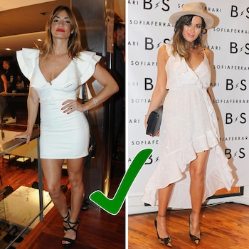 Claudia es una mujer guapa con un cuerpo divino. ¡Muy bien su largo de pelo! Hizo una buena elección con un vestido blanco corto, aunque tal vez otras sandalias sumarían. Karina es una de las mujeres más lindas: se ve bien desnuda y se ve bien vestida… Pasó a saludar a su amiga Barbie Simons con un vestido caché coeur que le sienta muy bien. Y una costumbre: lindos zapatos.