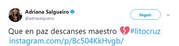"Que en paz descanses maestro", lo despidió Adriana Salgueiro, con el emoji de un corazón roto simbolizando su sentimiento de tristeza.