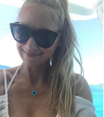 En la otra foto que data de la misma época tanmbién aparece de espaldas, y desde entonces sólo compartió fotos donde se la viera de los hombros para arriba o primeros planos de la cara.