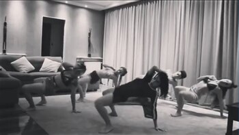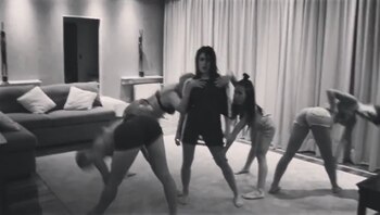 Al igual que en el videoclip, la actriz y sus bailarinas juegan con su sensualidad y con distintos pasos y poces que permiten relucir su costado más sexy y jugado.