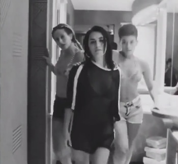 "Salimos de la pileta…salió coreo de #TuNovia en mi habitación", escribió la actriz y cantante en su cuenta de Instagram, en donde tiene más de cuatro millones de seguidores y en la que posteó las distintas imágenes que grabó.