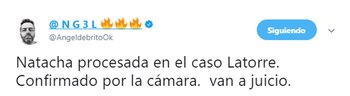 "Natacha procesada en el caso Latorre. Confirmado por la Cámara. Van a juicio", anunció el conductor de Los Ángeles de la Mañana con respecto a la causa que lleva adelante el Juzgado Nacional en lo Criminal y Correccional N° 40.