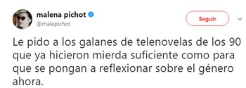 "Le pido a los galanes de las telenovelas de los ´90 que ya hicieron mier… suficiente como para que se pongan a reflexionar sobre el género ahora", concluyó.