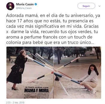 "Adorada mamá, en el día de tu aniversario, ya hace 17 años que no estás, tu presencia es cada vez más significativa en mi vida", comenzó la actriz en su cuenta de Twitter.