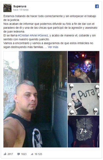 Desde la cuenta oficial de Superuva difundieron el nombre del sospechoso acompañada por una serie de fotos que lo ubican en el último show que tocó Ledesma.