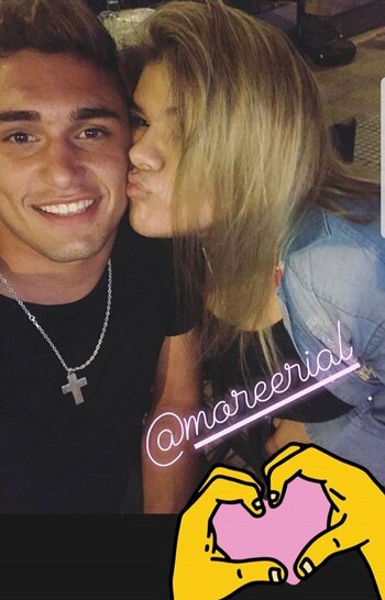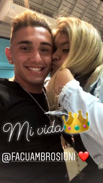 Morena oficializó su romance con el futbolista la semana pasada después de haber posteado en sus respectivas cuentas de redes sociales fotos en las que aparecen juntos. "Gracias, mi rey. Love you (Te amo)", fue el primer mensaje romántico que hizo público hacia Facundo Ambrosioni.
