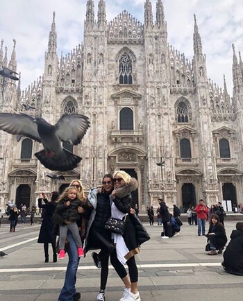 "Lindas palomitas en el Duomo", escribió Zaira junto con una imágen en la que se las ve a las cuatro con la catedral de fondo y unas palomas sobrevolando.