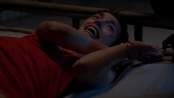 Peter Lanzani, Jimena Barón y Florencia Torrente, en una de terror