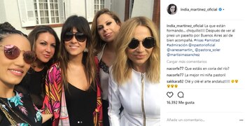 "Estoy muy feliz de estar compartiendo escenario con tan grandes artistas, para mi es un honor, y también estar cantando con India, a quien conocí escuchan la radio cuando estaba en España, en Madrid. Desde ese momento me volví fanática", contó Tini Stoesel en la presentación del espectáculo.