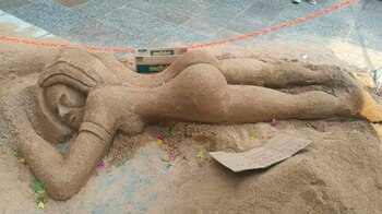 Después de su paso por Villa Carlos Paz, un brasileño le hizo un homenaje en la peatonal de Córdoba al hacer una escultura de la ex participante del Bailando 2017 con arena.