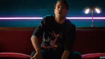 Acompaña a Santiago en el video la actriz Noe Antúnez, que mientras él canta, rompe con un mazo una habitación.