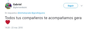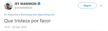 "Te queremos mucho. Mucha Fuerza Gera. Todo mi amor y cariño", escribió Guido Zaffora y Jey Mammon agregó: "Qué tristeza por favor".